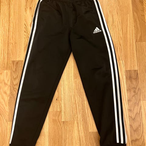 Adidas träningsbyxor för barn, unisexmodell i storlek 152. Byxorna är svarta med vita sidoremsor och är tillverkade i polyester. Resår i midjan. Modellen är avsedd för träning och vardagsbruk och passar både inomhus- och utomhusaktiviteter.