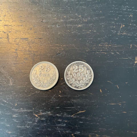 Svenska 2‑kronor mynt 1945 och 1948 silver