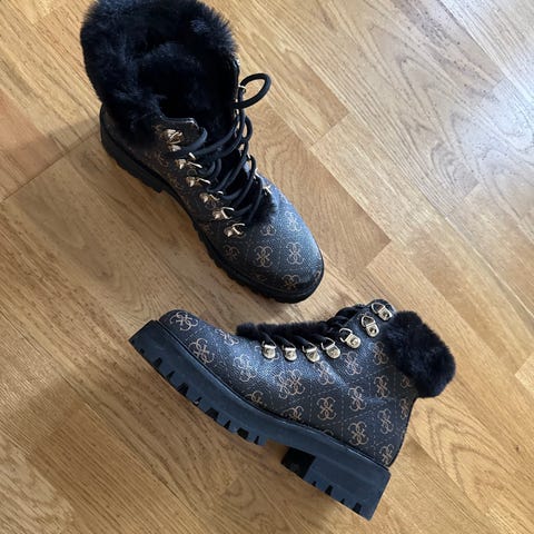 Steve Madden vinterskor i form av kängor i svart lackmaterial, storlek 37. Skorna har snörning framtill och grov sula. Dragflik bak med Steve Madden-logotyp. Modellen passar för kallare väder och vardagsbruk där man önskar en stabil och tålig vintersko.