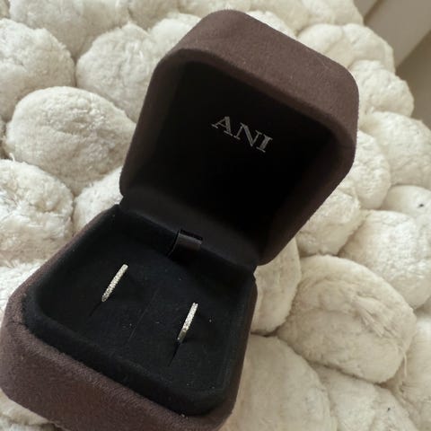 Ani örhängen för kvinna i guldpläterat material. Modellen har krokfäste och rund vit pärla framtill. Levereras i ask som syns på bilderna. Passar som smycke till vardag och fest.