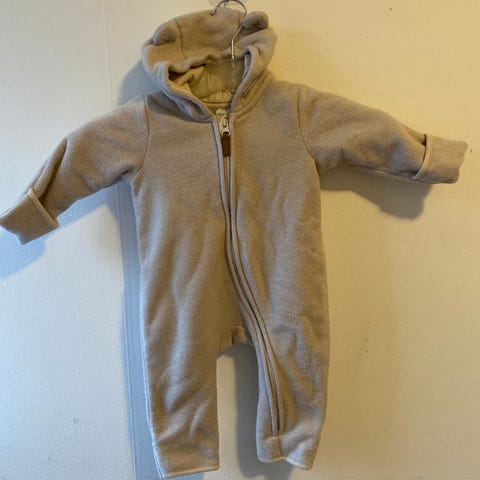 H&M fleece overall för barn i storlek 62. Overall i beige färg. Modellen är unisex och har lång ärm, långa ben samt huva. Dragkedja framtill för enkel av- och påklädning. Passar som ytterplagg för mindre barn.