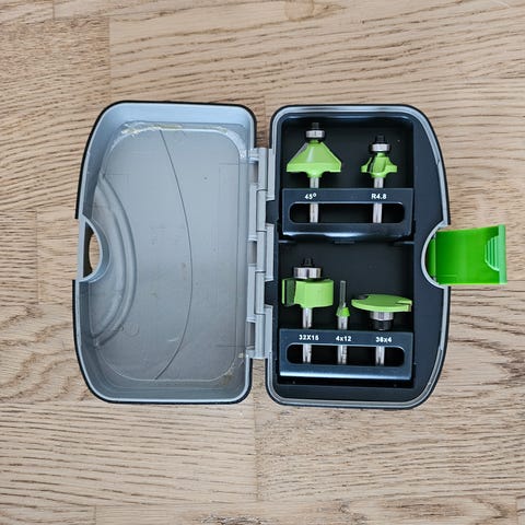 Cobolt frässats träbearbetning i trälåda. Nya.