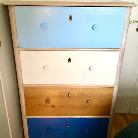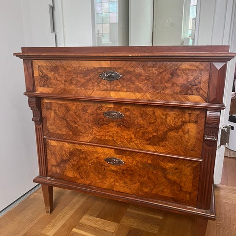 Fin gammal byrå, med fina detaljer kvar, med fem rymliga lådor.