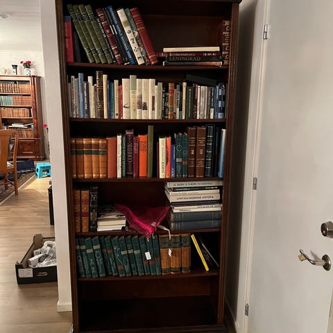 Vit bokhylla med belysning