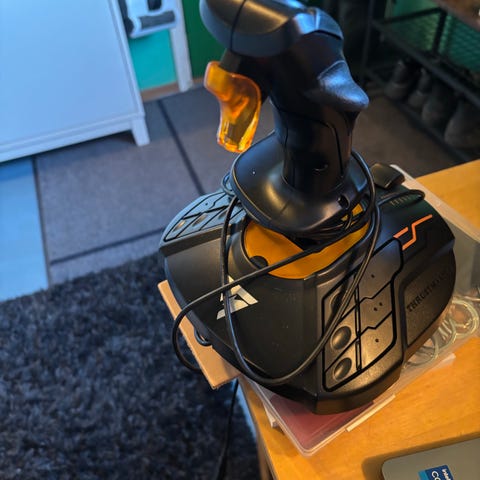 Thrustmaster T-Flight Stick X joystick i svart utförande. Joysticken är avsedd för flygsimulatorer och andra spel på dator eller kompatibla spelkonsoler. Den har flera programmerbara knappar, styrspak med handstöd samt bas med stabil fot. Levereras med originalkartong enligt bild. Helt ny skick då jag använt 1-2 gånger då jag inte hitta mitt intresse.