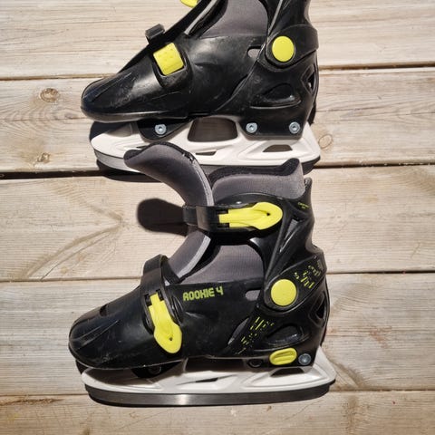 Fins svarta skridskor. 29-32. Justerbara. Iceskate. Använda av ett barn.