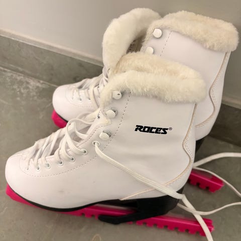 Wisan skridskor för barn i storlek 36. Klassisk vit modell med högt skaft och snörning framtill. Yttermaterial i syntet med vadderad insida för ökad komfort. Sulan är i brun ton med fast monterad skena anpassad för övriga skridskosporter och allmän åkning på is. Passar exempelvis för fritidsåkning i ishall eller utomhus på plogad bana.