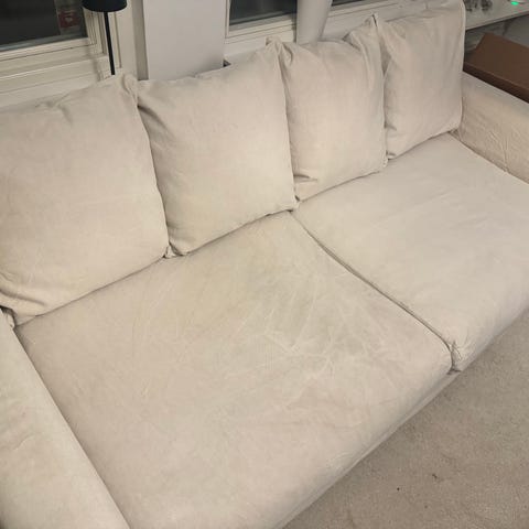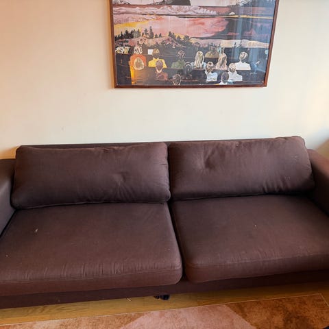 Soffa av modell Antwerpen från Jotex säljes. Soffan är i hyfsat skick, något nedsutten och med några mindre fläckar (se sista bilden). Klädseln är avtagbar och går att tvätta.