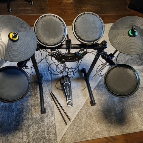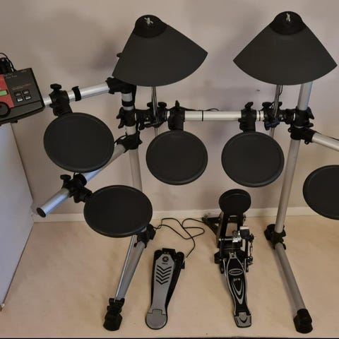 Hopfällbart övningstrumset. Baspedal ingår inte.