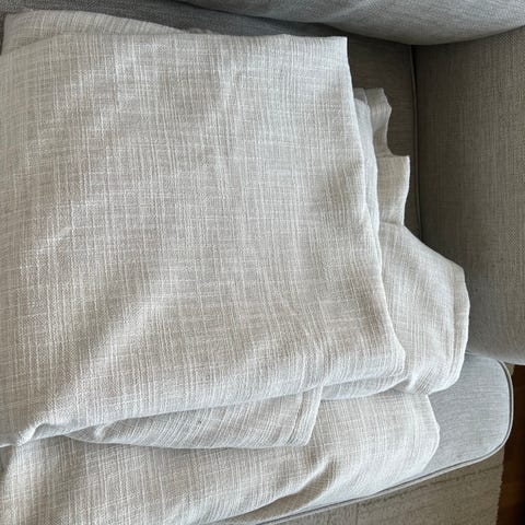 2 stycken Åhléns Home gardinlängder i en ljus beige /rosa ton, matt, lite sammetsaktigt tyg.
