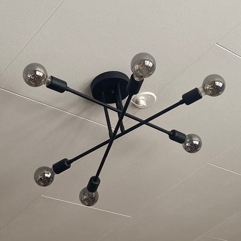 Taklampa med åtta lampor, ca 95cm bred. Sladdarna går att hänga hur man själv vill.
