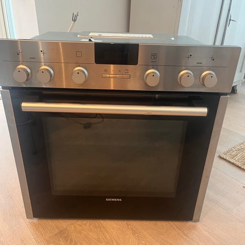 Säljer en inbyggnadsugn av märket Siemens som har några år på nacken. Teleskopskenor för plåtarna och termometer. 2 plåtar, 1 långpanna och ett galler. Pyrolysfunktion.