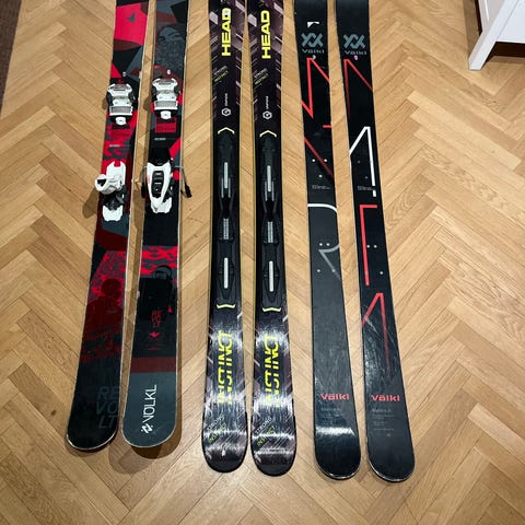 Head XRC alpinskidor med bindningar i gul och blå design. Skidorna är utrustade med integrerade bindningar som kan justeras efter pjäxstorlek. Passar för piståkning och allroundbruk i skidbacke. Undersidan är svart med Head-logotyp och ovansidan har tydlig XRC- och Head-märkning.