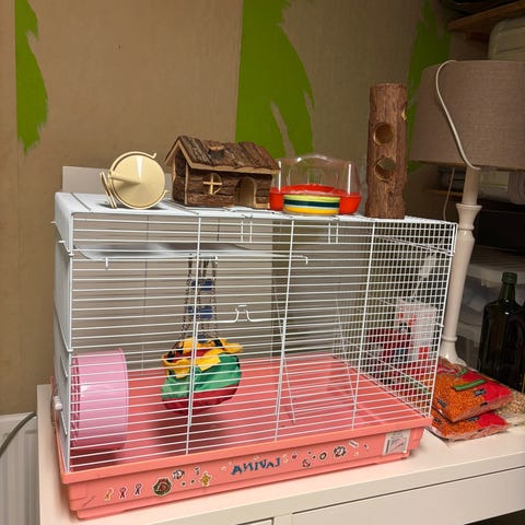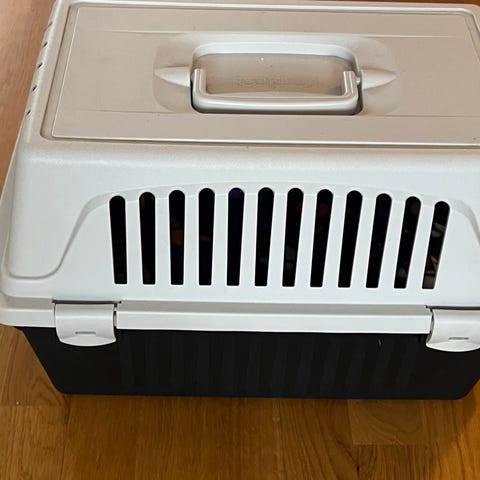 Smådjursbur med vit plastbotten och svart galleröverdel. Passar mindre smådjur som transportbur/kortsiktig förvaring. Buren har öppning upptill via gallerlocket och släta kanter i botten för enkel rengöring.