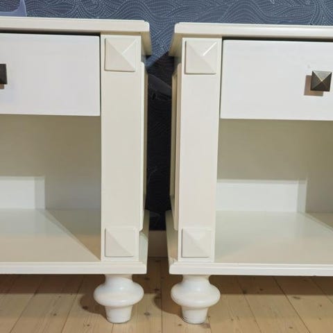 Sängbord i trä med en låda framtill och svart metallstomme. Ovansidan har synlig träådring och lätt rundade hörn. Underredet består av fyra runda metallben i svart med ett nedre gallerhyllplan för extra förvaring. Passar som sängbord eller sidobord i sovrum eller vardagsrum.