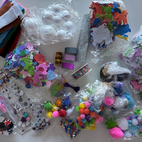 Sortimentlåda med små färgade gummiband för armbandstillverkning eller annat pyssel. Lådan är indelad i flera fack med gummiband i olika färger, inklusive enfärgade och flerfärgade varianter. Passar för tillverkning av armband och andra enklare smycken eller pysselprojekt. Plastlådan har lock och håller banden sorterade efter färg. Bra skick. Inte torkade. Även fästen/ lås/ krokar ingår.