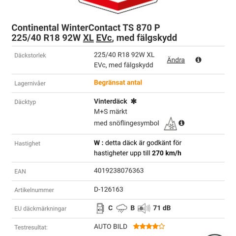 Typ av däck: Andra däcktyper