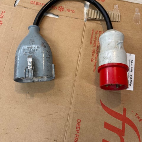 Säljer en robust och högkvalitativ AC-kabel för industriell användning. Perfekt för dig som behöver en pålitlig anslutning för maskiner, laddutrustning eller annan utrustning som kräver högre effekt.