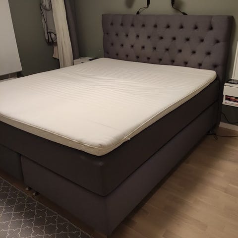 Mio New York kontinentalsäng 210x200cm i mörkblått sammetstyg. Sängen är ca 4,5 år gammal.