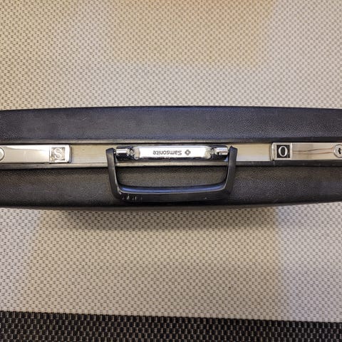 Använd men har välfungerande ej nedslitna hjul så den har många resor i framtiden kvar med en ny ägare. Grön på ena sidan och gul som radar mot vinrött på andra sidan. Mycket fräsch insida Avhämtning på plats