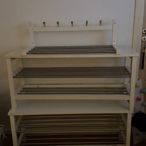 Plats för flera par skor på två hyllplan.