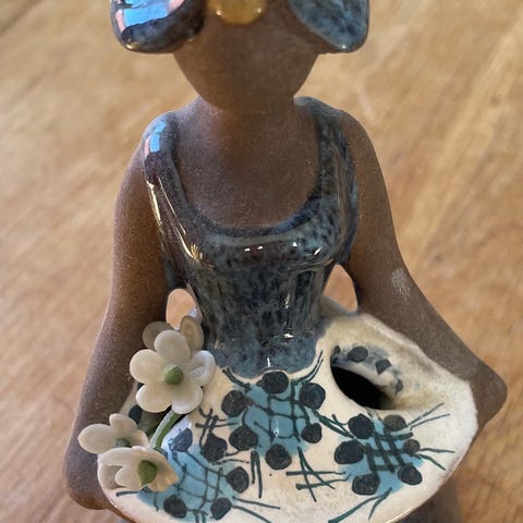 Figurin, keramik, blomsterflicka, Henry Hallberg för Deco, 1900-talets andra hälft.