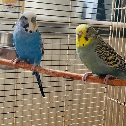6 steken undulat 2av de 5 månader gammal med stor bur.