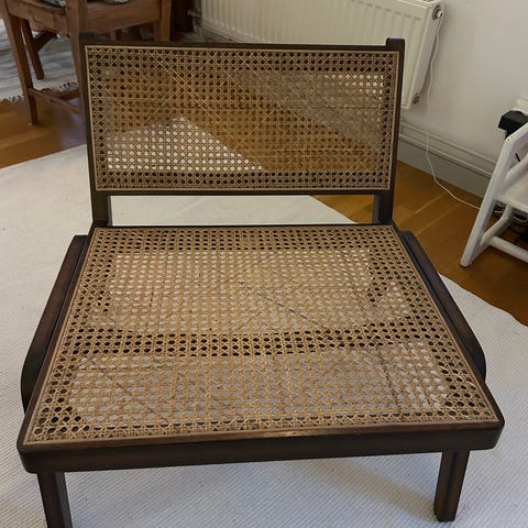 En med ett hål på sittdelen. I övrigt gott skick med mindre slitage.