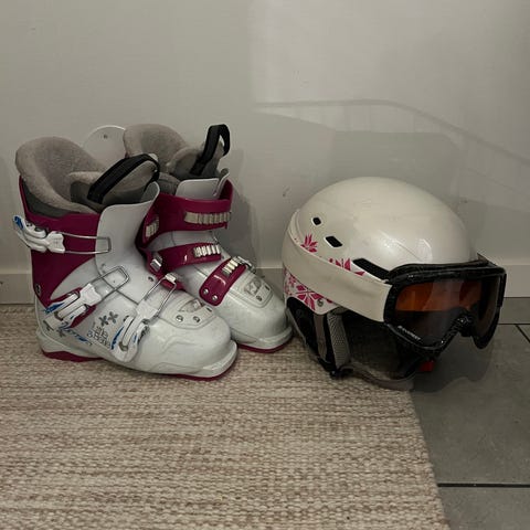Skidpjäxor, hjälmar och skidsele