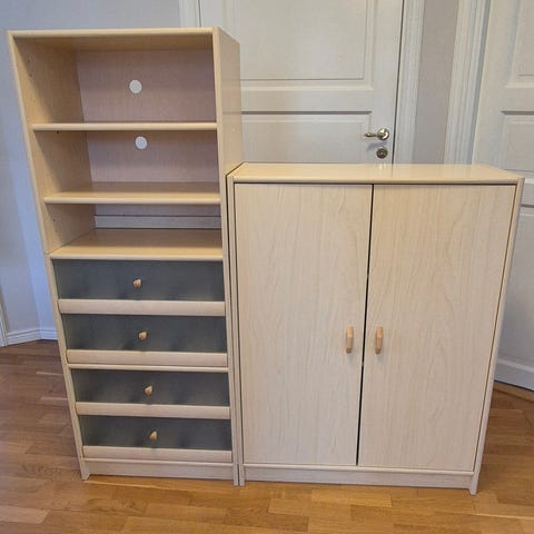 Säljer 3 st IKEA skåp/sideboard. Det går att stapla men finns ben till alla tre skåpen.