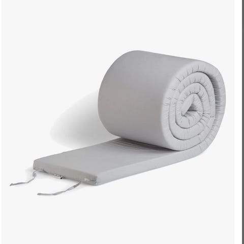 Spjälsängsskydd från Garbo & Friends med djurmönster i vit och grå färg. Skyddet har knytband för fastsättning runt spjälsängens kanter. Vackert tryckt motiv och enfärgad baksida i grå ton. Används för att ge en mjukare kant runt spjälsängen och minska risken att barnet slår i spjälorna eller fastnar med armar och ben.