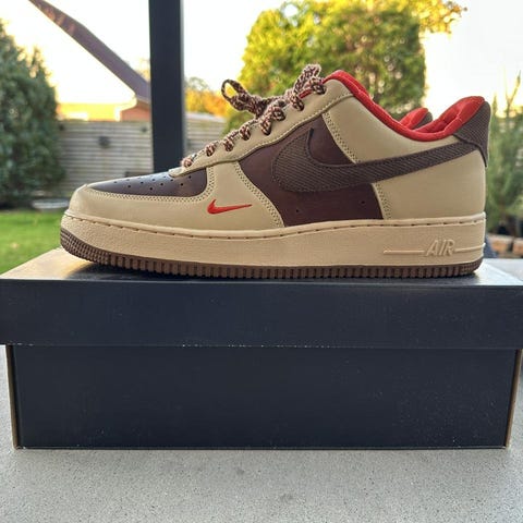 Nike Air Force 1 Low SP Ambush sneakers i färgen Game Royal/Vivid Sulfur (blå/gul). Modellen är låg och har ovandel i läder med tydlig gul Swoosh-logga. Skorna kommer i europeisk storlek 45 (EUR 44,5 enligt kartongmärkning). Levereras med extra gula skosnören enligt bild.