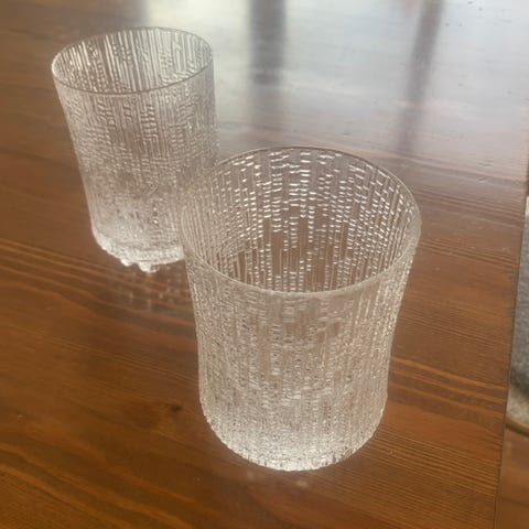 Säljer 10 stycken Iittala kartio glas, vissa glas är lätt dimmiga men det går säkert att använda något medel för att få bort. Förövrigt inga skador på glasen.