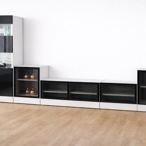 Modern mediabänk med vitrinskåp – svart/vit + LED