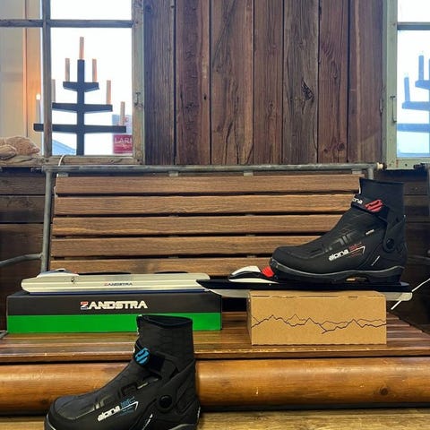 Zandstra långfärdsskridskor med Rottefella BC-bindning.