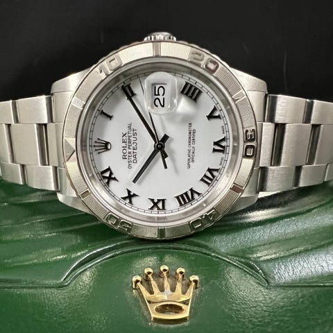 Upptäck den tidlösa elegansen hos Rolex Turn-O-Graph 16263 från 1996. Denna ikoniska tvåtoniga modell kombinerar Rolex klassiska design med sportig precision. Med en 36 mm Oyster-stål och 18k guld bezel, är denna klocka både sofistikerad och robust. Utrustad med den pålitliga Caliber 3135-verket och en vattentålig konstruktion, passar den perfekt för både vardag och speciella tillfällen. Turn-O-Graphens roterande bezel och den klassiska Cyclops-linsen gör denna modell unik. En samlarobjekt som erbjuder både stil och funktion – en sann Rolex-klassiker.