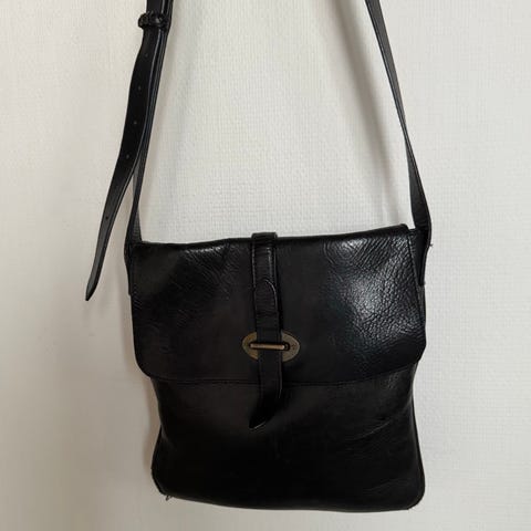 Blå liten väska skinn med axel rem mocka på insidan den är inte använd ny pris 1200kr