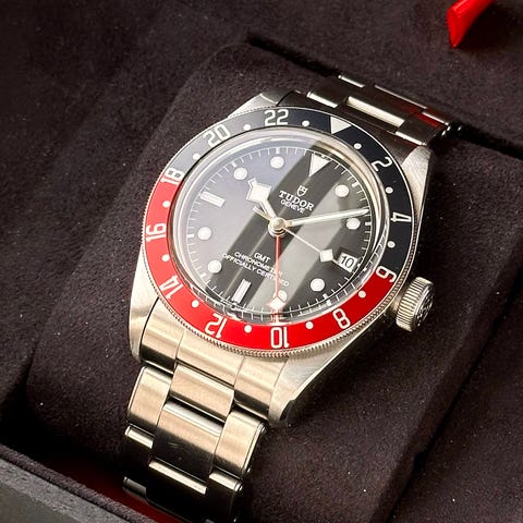 Ny och oanvänd Tudor Black Bay GMT i Pepsi utförandet.