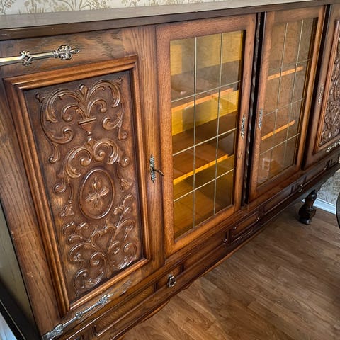 Spegelskänk från sent 1800 tal som är originalmålad för att efterlikna valnöt.