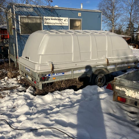 Brenderup FS1425 OB släpvagn med kapell. Enaxlad obromsad släpvagn med lastutrymme på cirka 2500 mm längd. Utrustad med grått kapell 80 galler och aluminiumfälgar med splitternya dubbdäck på plåt fälgar. Max lastvikt är 475 kg och totalvikt 650 kg. Tjänstevikt är 175 kg. Släpvagnen har bakre överhäng på 1234 mm. Passar för transport av exempelvis byggmaterial, trädgårdsavfall motorcykel eller annat skrymmande gods inom angiven lastvikt.
