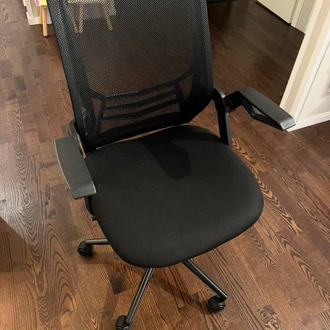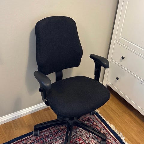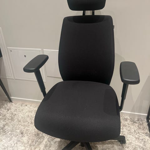 En kontorsstol som kan justera armstöd mm, har används hemma. Kan hämtas vid lappkärsberget nära Stockholm universitet .