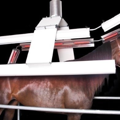 IRELT A26 har extra infraröd lysrör längst ner till hästens ben. Manuellt höj- och sänkbar upp till ca. 3 meters takhöjd. Veterinärer rekommenderar!