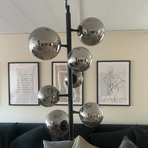 Molekyl är en minimalistisk och stilren taklampa med en stomme i svart metall som pryds av vackra glaskupor i rökfärgat glas. En annorlunda modell med mer höjd än bredd vilket ger dig fantastiska möjligheter - placera den ovanför matbord, bardisk eller i ett hörn. Vart du än placerar den utlovar den att dra ögonen till sig! Lamppropp och ljuskälla medföljer ej.