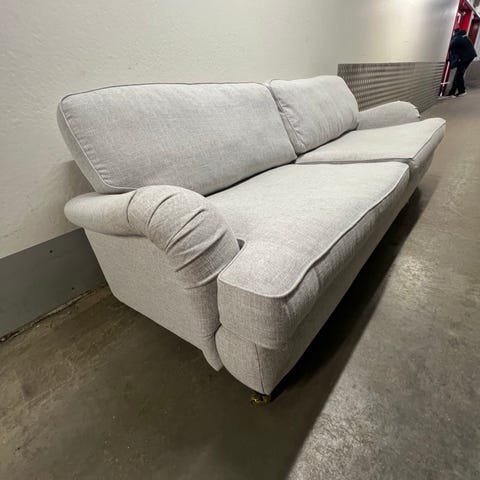(Mio Oxford, Oxford soffa, Howard soffa, svängd soffa, 3-sits soffa, tygsoffa, grå soffa, svartgrå soffa, klassisk soffa, vardagsrumssoffa, kvalitetssoffa, bekväm soffa, elegant soffa, designsoffa, soffa med hjul, svängd Howard, modern soffa, Mio Howard, grå Howardsoffa)