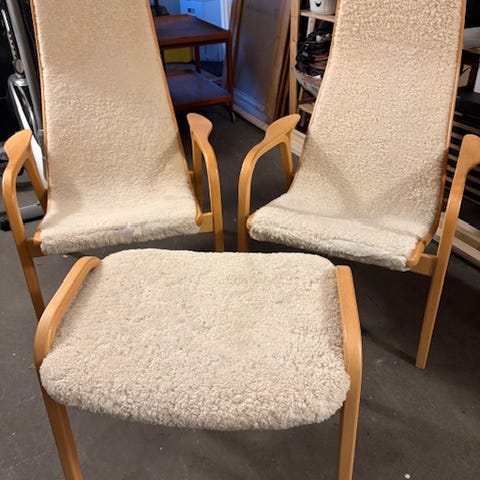 Lamino fåtölj, en ikonisk svensk designklassiker formgiven av Yngve Ekström år 1956. Fåtöljen tillverkas av företaget Swedese och har blivit utnämnd till århundradets svenska möbel.