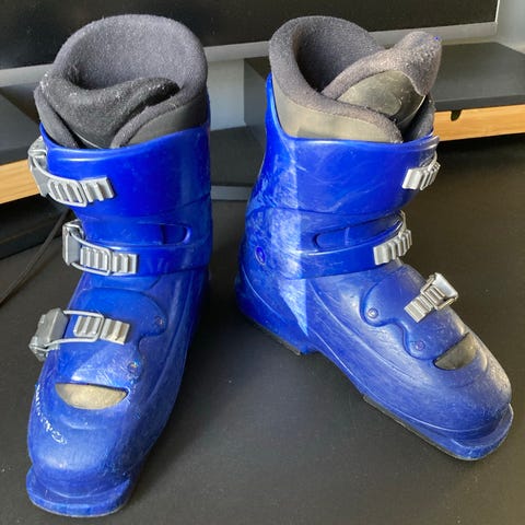 Slalom pjäxa i svart med flera justerbara spännen framtill. Innerstövel med vaddering och blå kant upptill för ökad komfort. Yttersula anpassad för alpinbindning. Passar för utförsåkning i skidbacke.