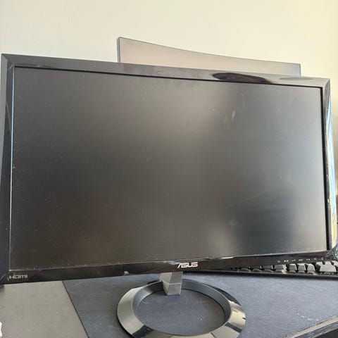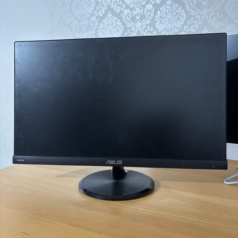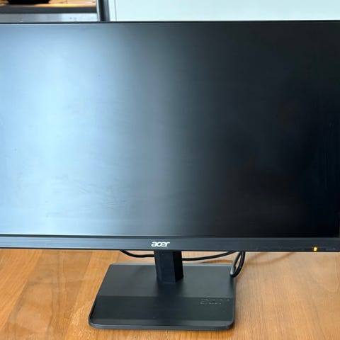 Samsung S23C650 bildskärm med 23 tum skärmstorlek i svart utförande. Skärmen står på en stabil rektangulär fot med höj- och sänkbar stativarm. Anslutningar och övriga tekniska specifikationer framgår av etiketten på baksidan av skärmen. Passar för användning med stationär dator på skrivbord, exempelvis för kontorsarbete eller vardagligt bruk.