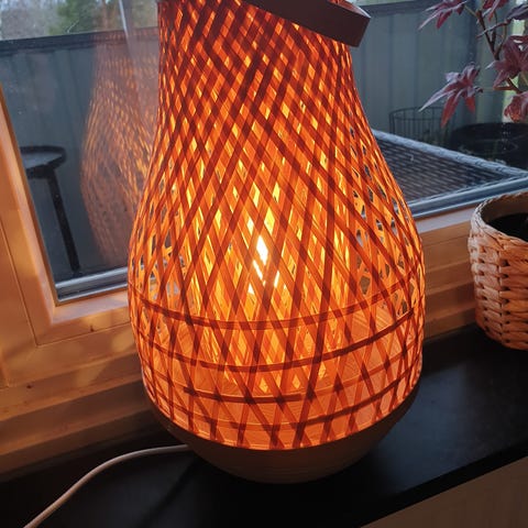 Två bordslampor eller fönsterlampor med en unik design i glas. Höjden är cirka 35 cm och diametern upptill är ungefär 10 cm. 295kr för båda
