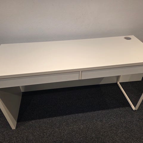 Väldigt bra skrivbord från IKEA. En repa på ovansidan (se bild) som lätt döljs av ett skrivbordsunderlägg. I övrigt i fint begagnat skick. Insats till en låda följer med.