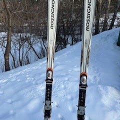 Rossignol slalom med Salomonbindningar + Rossignolstavar 110-120 cm.